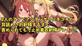 【バイノーラル録音・実演音声】2人のアラビアンダンサーに手コキと耳舐めされ射精するまで責められても寸止め着衣射精プレイ【3P/寸止め/男の潮吹き】
